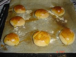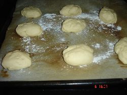 Coloque-as num tabuleiro, untado com margarina ou forrado com papel vegetal, e polvilhado com farinha.