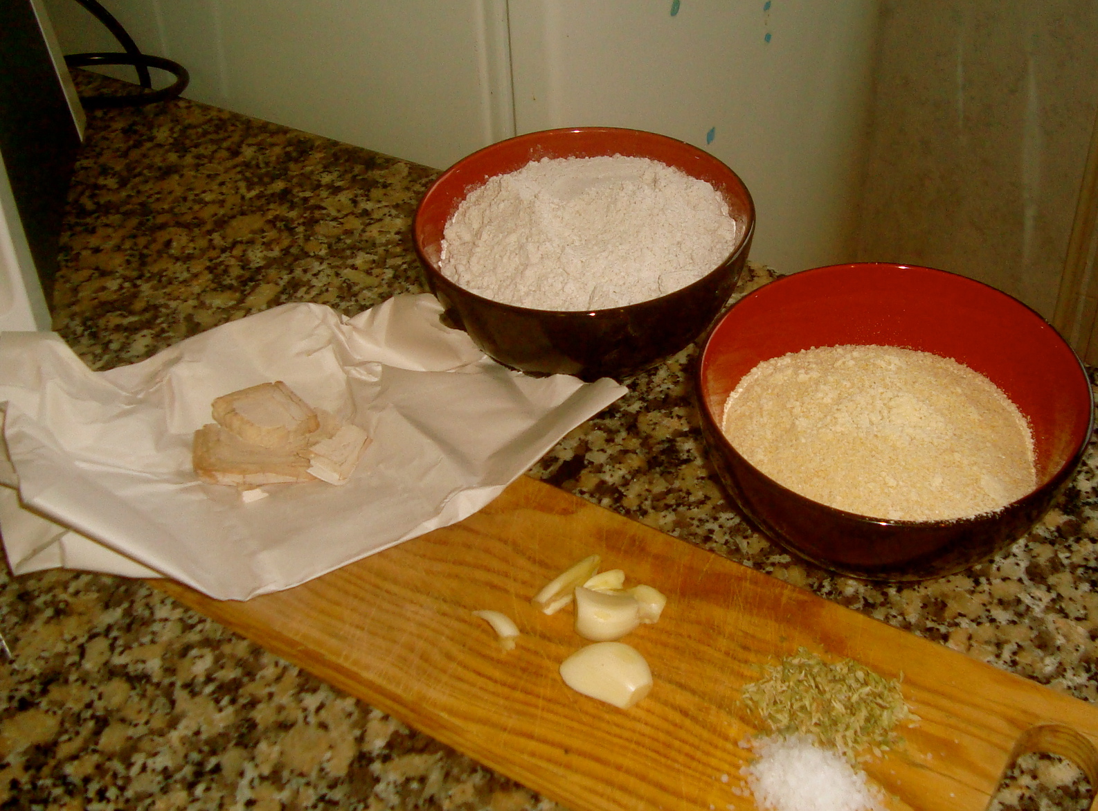 "Tampa fechada" .Coloque no copo a agua e o sal(pouquito) e o fermento, o alho, os oregãos e por fim o azeite em fio e programe 2 min temp 37º vel 2.Junte os 3 tipos de farinha e programe 2/3 min vel