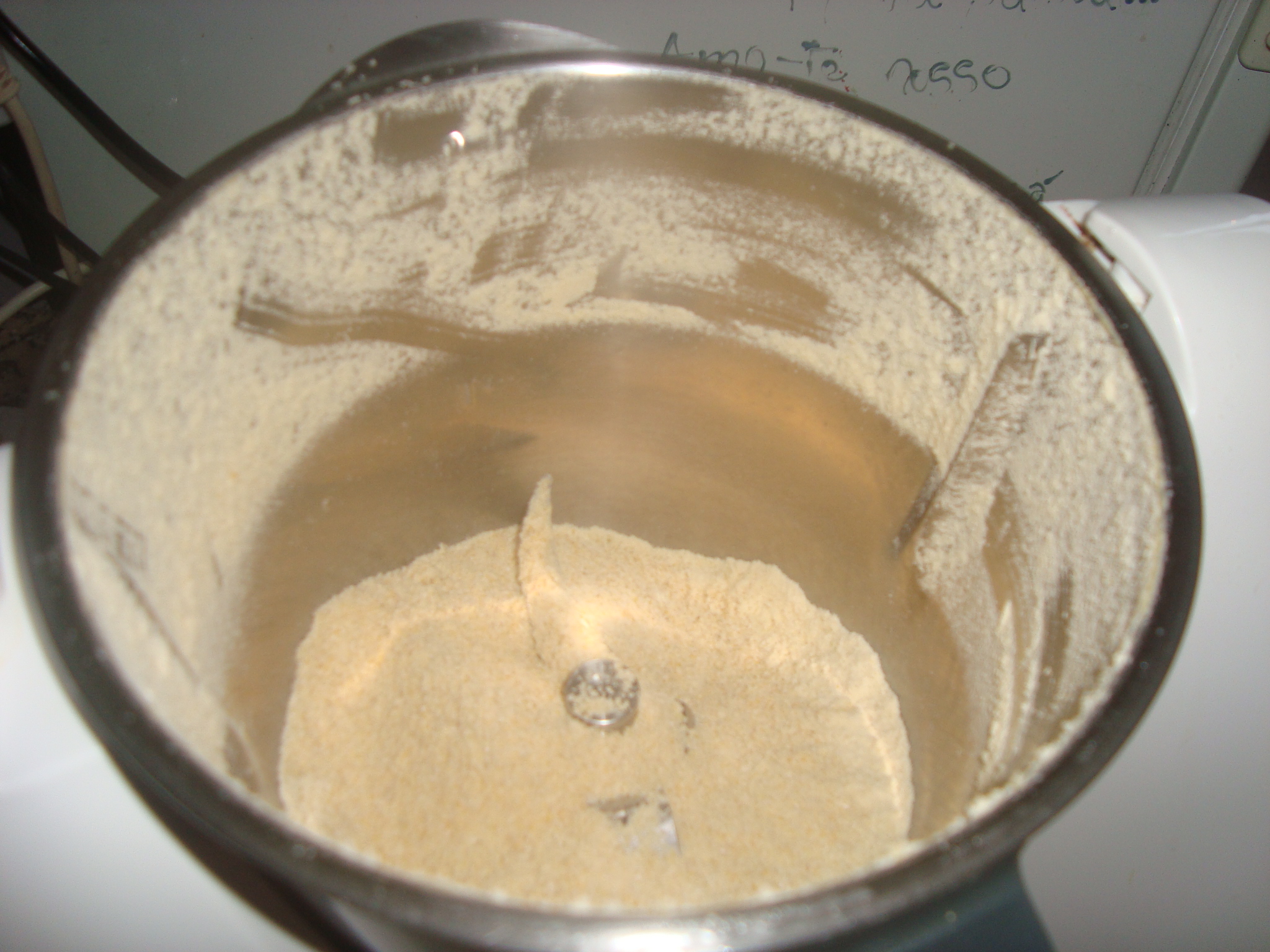 "Tampa fechada" , reserve esta farinha.Insira os dentes de alho e pique 2 golpes turbo