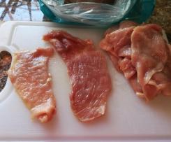 1. - Comece por preparar a carne. Se os bifes forem muito grandes pode cortar ao meio, como demonstra a foto.