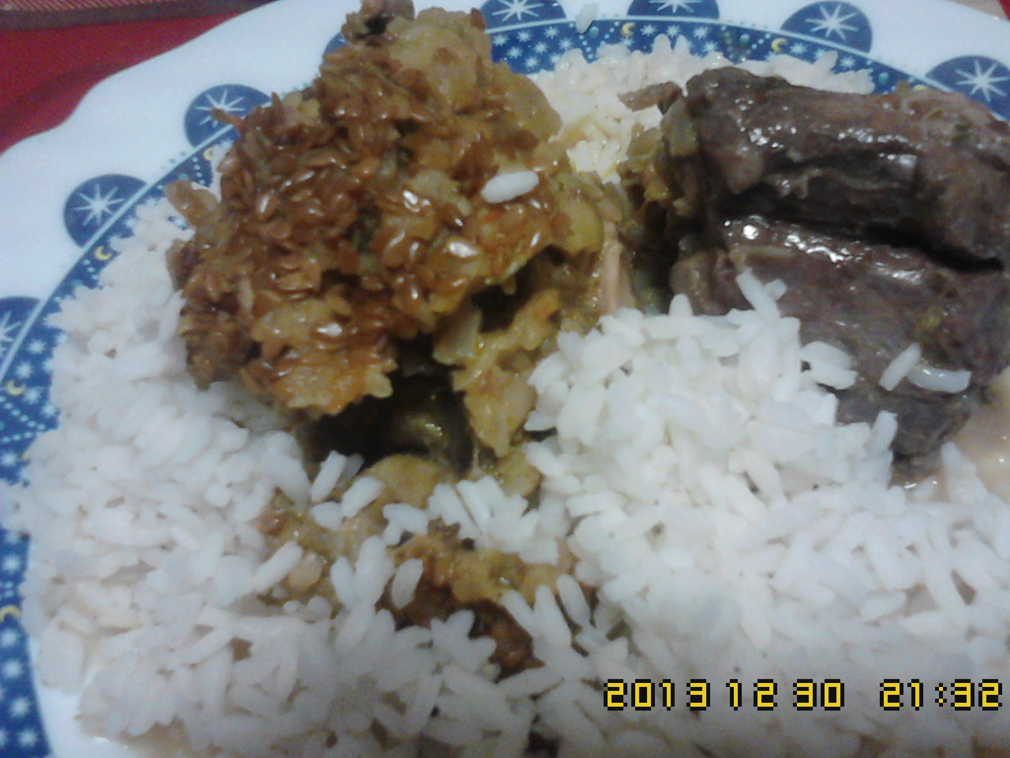 4) Pitada de gengibre,de pimenta em cima do borrego.No fim ponha o refogado em cima do borrego a seguir coloque as sementes de linhaça em cima.45m-V2-varoma.