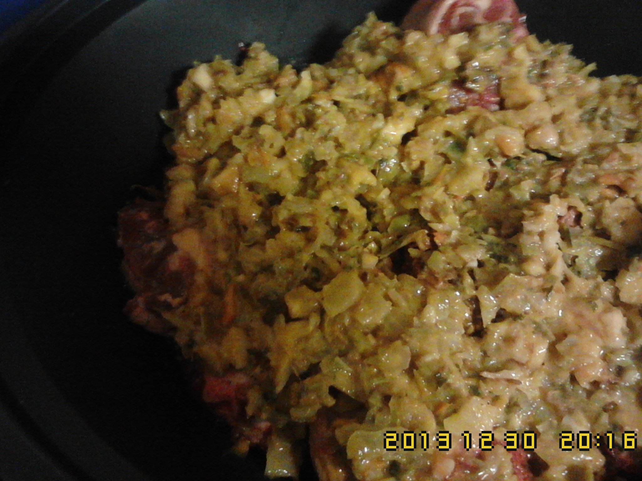 1) Refogado,picar a cebola,castanhas,coêntros,feijão verde,tomate com pele,alhos.10s-V5-picar.Refogado;V2-5m-Varoma.
