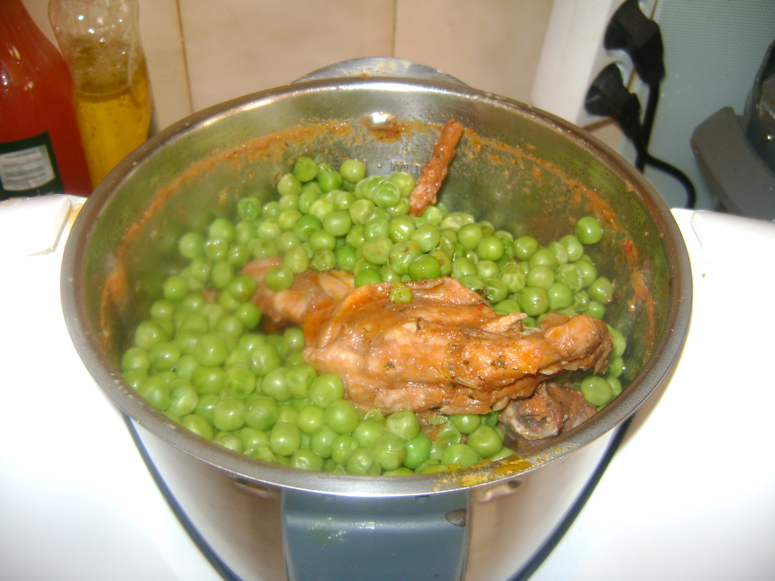 "Velocidade inversa" findo o tempo juntei as ervilhas ao coelho e servi!