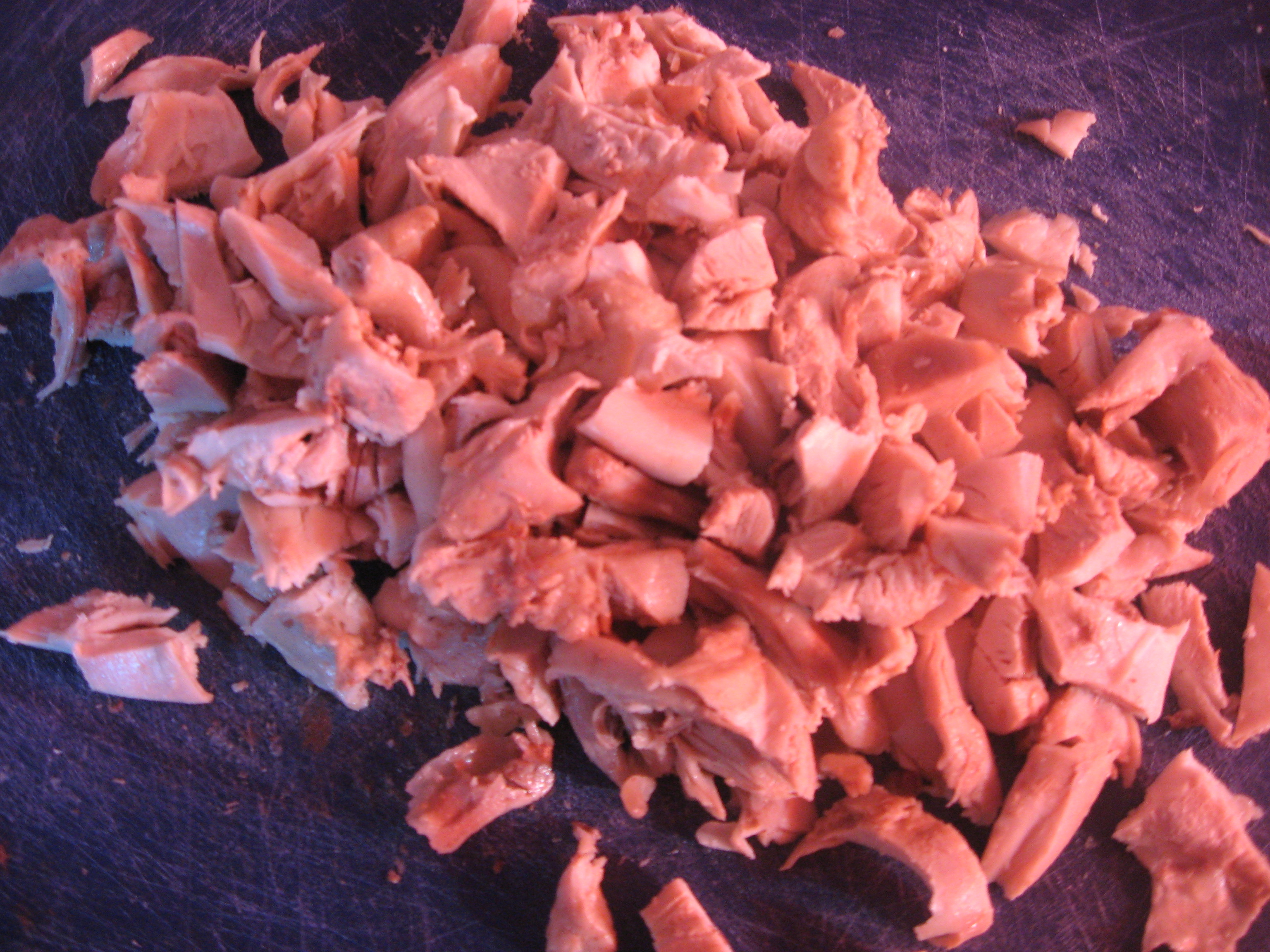Retirar tudo do copo, e separar o frango para arrefecer e cortar aos pedacinhos (gosto com faca)