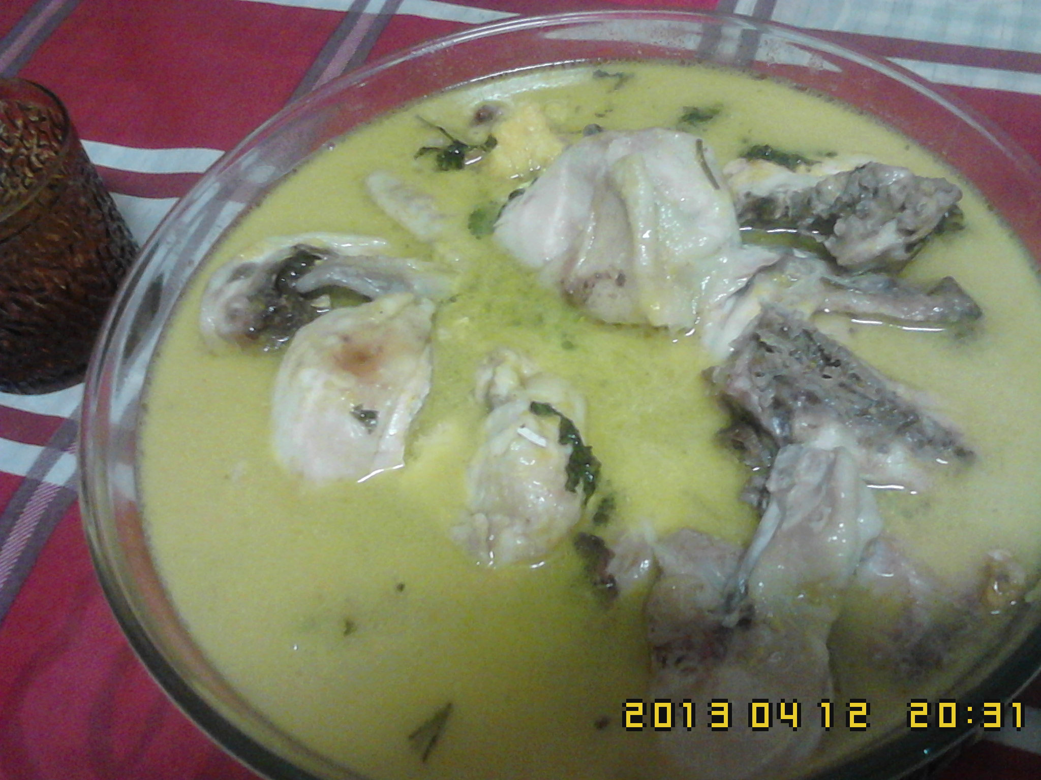 Partir o frango aos pedaços, ponha sal.Dentro de uma tigela ponha,azeite,coentros,caldo de galinha partidos aos bucados, alhos cortados. Bezunte nos pedaços de frango,ponha numa travessa. Meio litro de água no copo na bimby.Tape o copo.Ponha a tampa da varoma em cima do copo.Dentro da tampa da varoma, o frango temperado.Por cima do frango exprema as 2 laranjas e o limão.V/3,vapor.1h.Acompanhado com arroz branco.Cozi 4 ovos,cortei em rodelas finas.Pôs em cima do arroz.Pode ser acompanhado com arroz de cenoura.Bom apetite