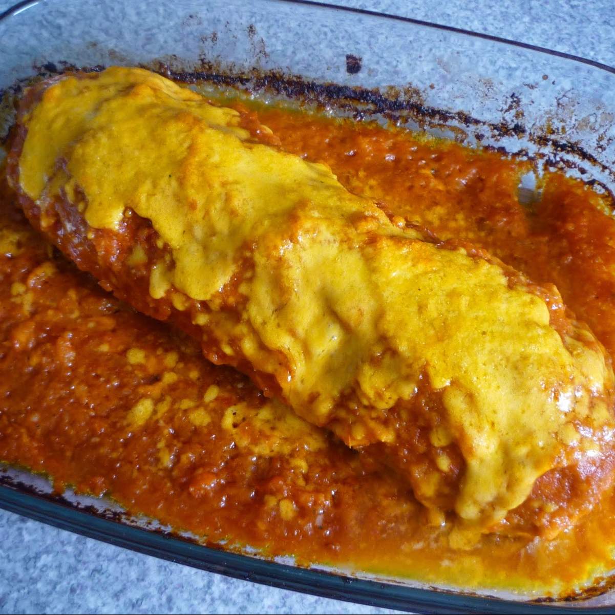 14. Junte a água ao molho de tomate e misture 10 seg / vel 4. Regue o rolo com este e leve ao forno cerca de 1 hora. De vez em quando abra o forno e regue o rolo com o molho.