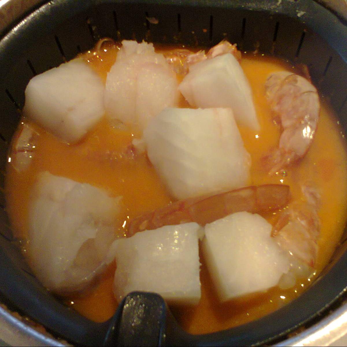 Comece por preparar o fumet conforme livro base e reserve.