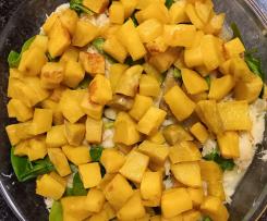 Bacalhau com natas com batata frita saudável e espinafres