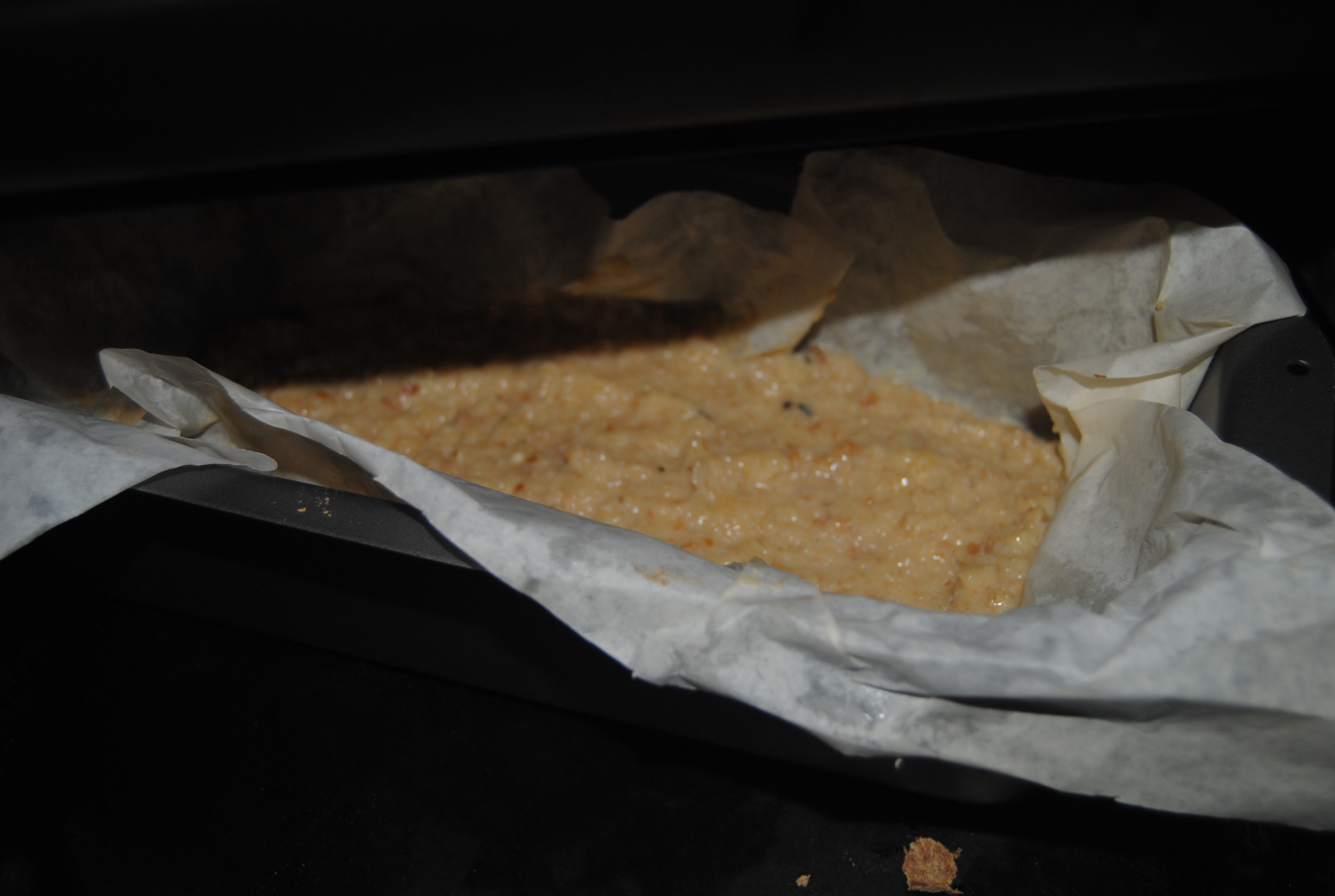 Forrar uma forma de bolo inglês com papel vegetal untado com margarina.