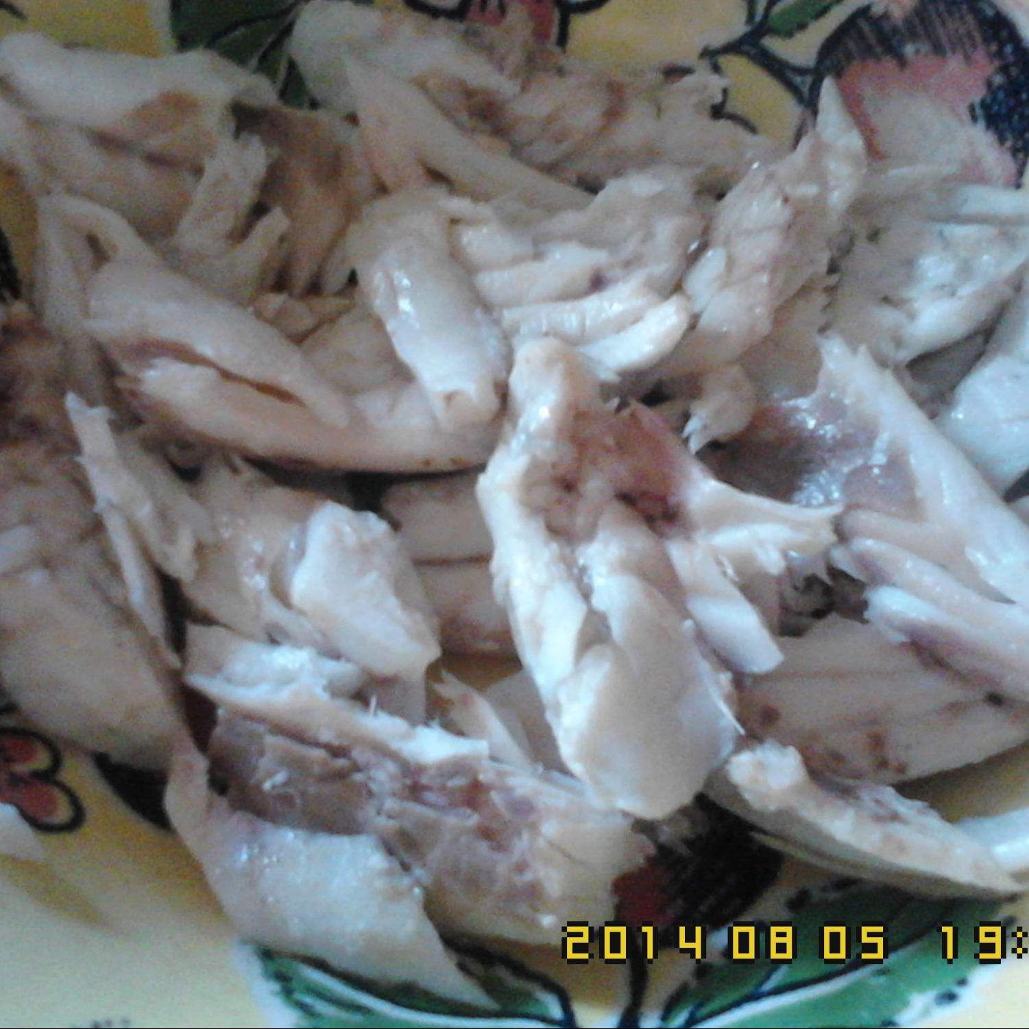 3)A seguir noutra travessa,ponha a cebola,curtada em rodelas finas,folhas de salva,os alhos,curtados.O tomate,curtado fino,delìcias do mar,curtar fino,junte o peixe desfiado e sem as espinhas,feijão carete cozido de frasco,sal fino,maionese.Misture.Bom apetite.