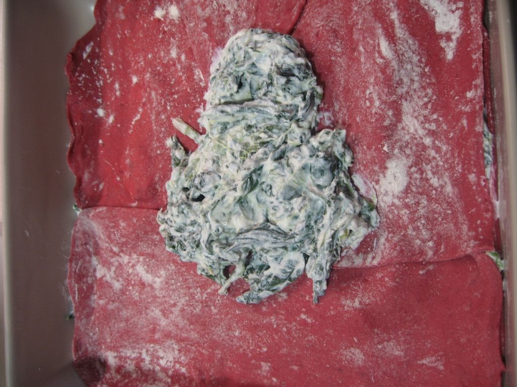 - Coloque no fundo de um pirex uma porção de molho de tomate seguida de uma placa de massa. Deite uma camada de espinafres e ricota e repita o processo até terminar todos os ingredientes. Finalize a lasanha com uma camada de béchamel e cubra com o queijo ralado. Leve ao forno a 180ºC cerca de 30 minutos.