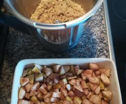 - Verter o crumble por cima das pêras (sem calcar) e levar ao forno pré aquecido a 200° durante 30min. Se durante a cozedura o crumble começar a ficar muito tostado proteja com uma folha de papel alumínio/vegetal.