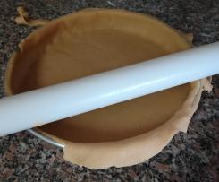 - Retirar a massa do frigorífico e numa bancada enfarinhada estender a massa com a ajuda de um rolo de modo a ficar um pouco maior do que a forma.