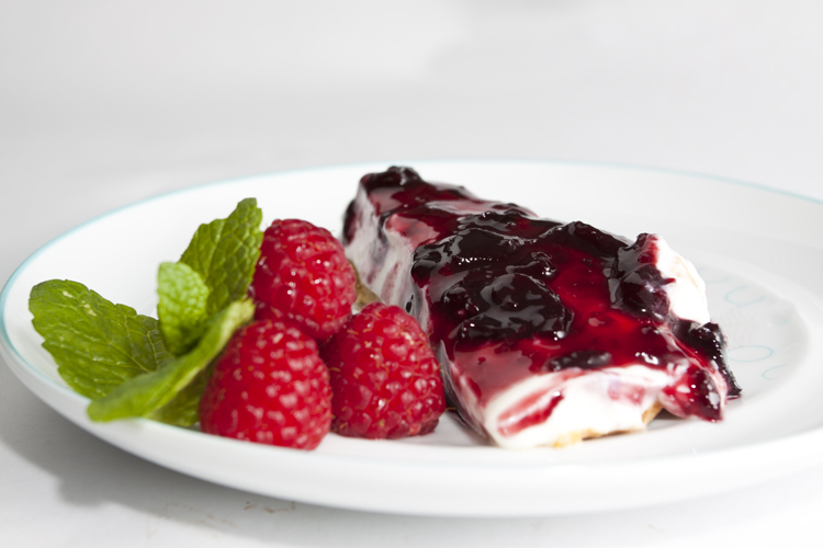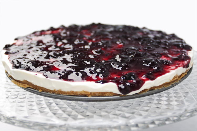 Coloque a mistura sobre a bolacha e espalhe com a espátula. Deixe repousar o cheesecake no frigorífico durante 3 horas até servir.