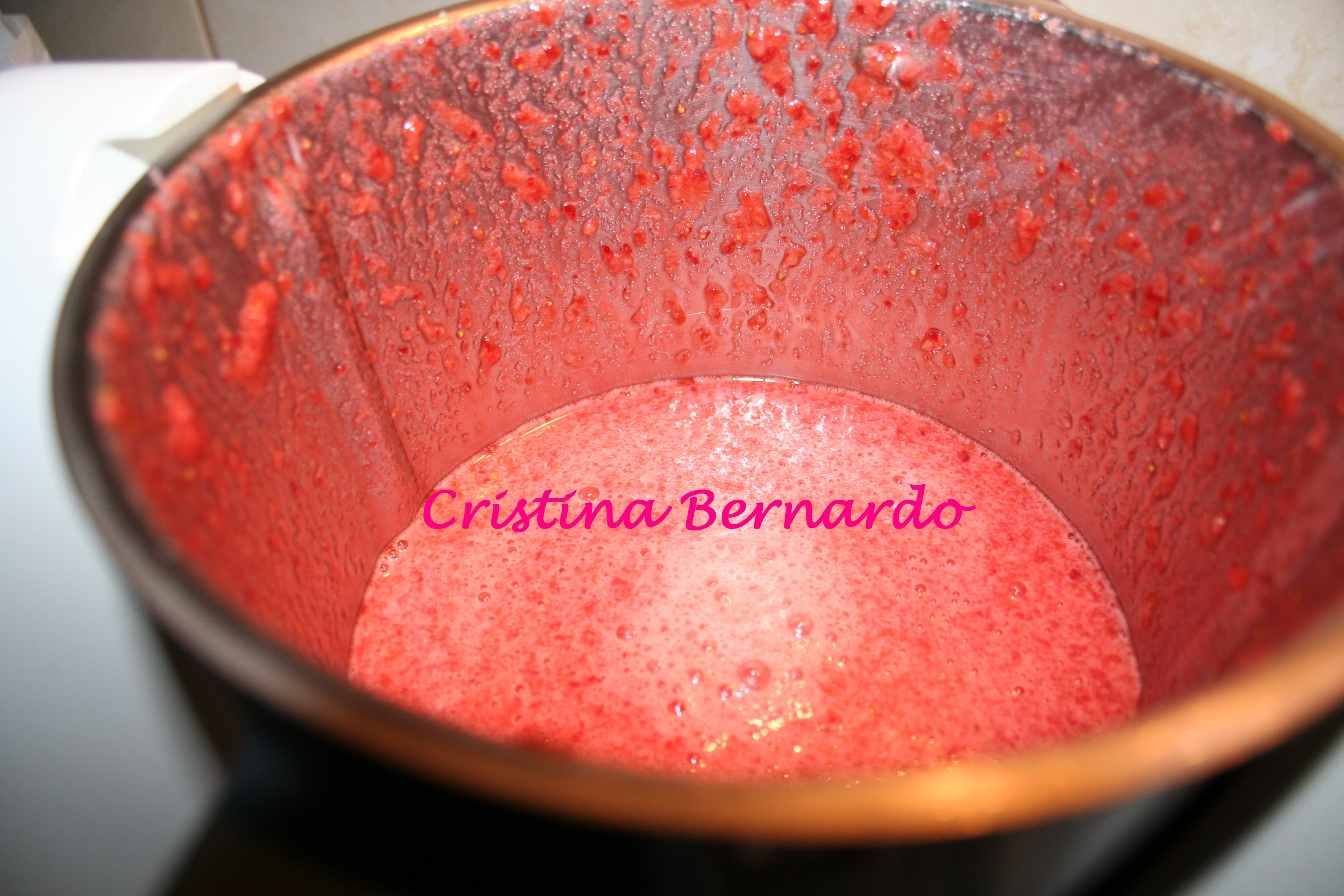 Esta compota fica mais grossa, mas também depende muito da qualidade do morango que usa. Caso verifique que a compota no final dos tempos indicados ainda não está o suficientemente grossa, coloque mais uns minutos (cerca de 10-15m Varoma vel.1)