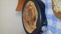 Unte uma frigideira anti-aderente, ou a máquina de crepes, deitar um pouco de massa para cobrir a superfície e dourar de ambos os lados.