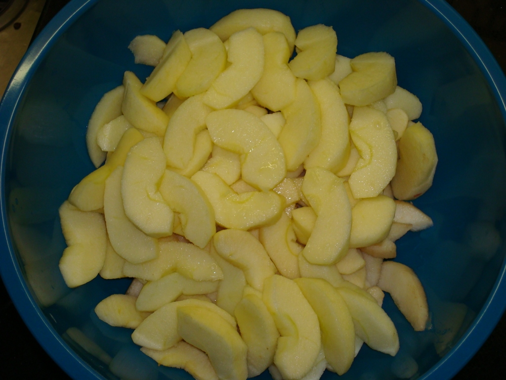 "Tampa fechada" todos os ingredientes do crumble e programar 30 seg / vel 4. Reservar.3. Descascar as maçãs e as pêras e cortar em fatias grossas. Reservar, regando com um pouco de sumo de limão.