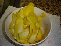 Retira-se a casca dos limões (sem a parte branca). No copo da Bimby deitam-se as cascas dos limões e pulveriza-se na velocidade 9 até ficar bem picadinho.