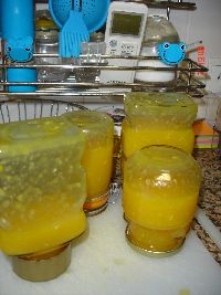 No fim de pronto deite em frascos esterlizados e deixe o doce arrefecer nos frascos de cabeça para baixo.