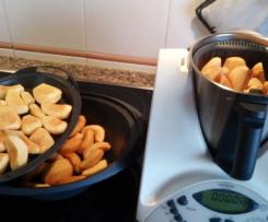 - Distribuir os marmelos pelo cesto, varoma e tabuleiro da varoma.