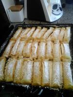 - Manteiga derretida (q.b. para untar as folhasda massa Filo)