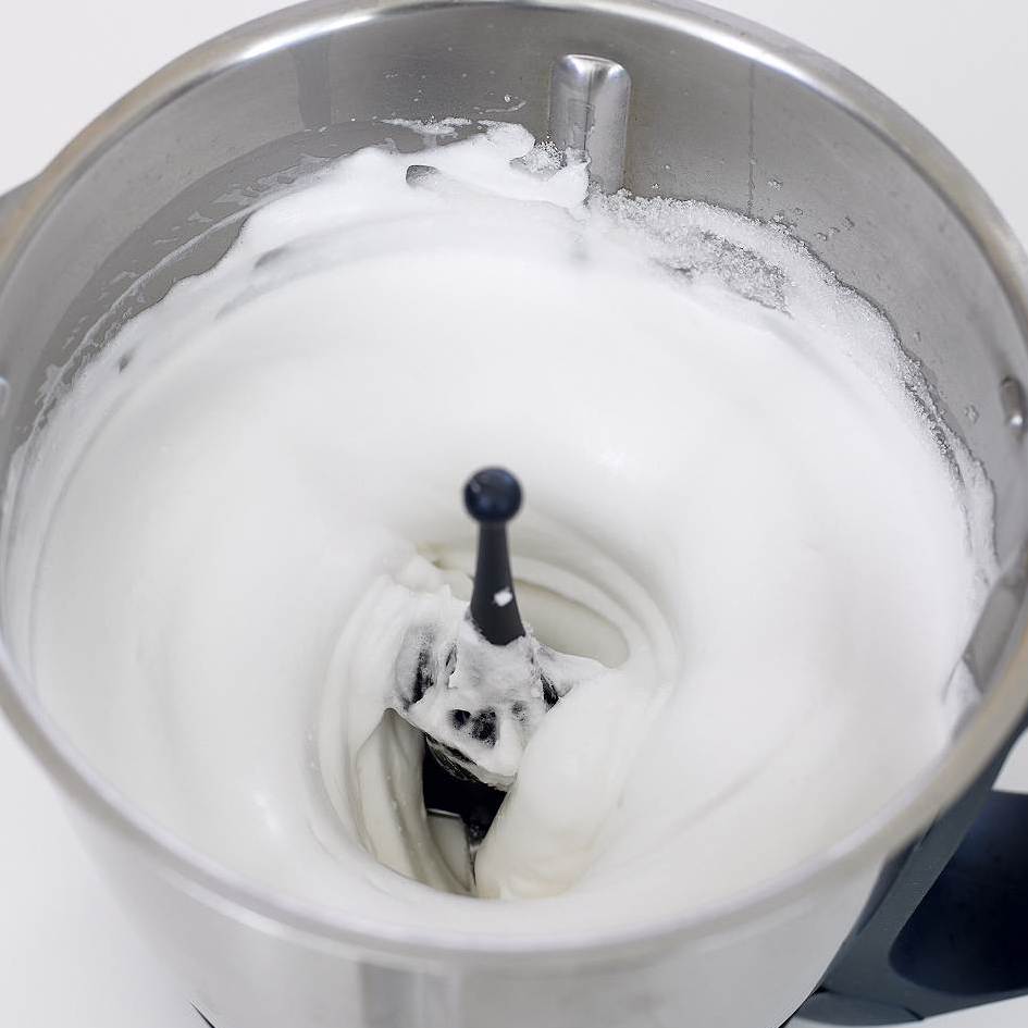 - Com a Bimby em funcionamento na vel 3, incorpore pelo bocal da tampa, uma a duas colheres de cada vez, do açúcar reservado.