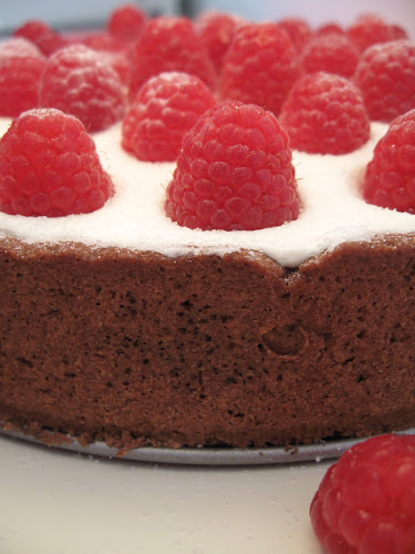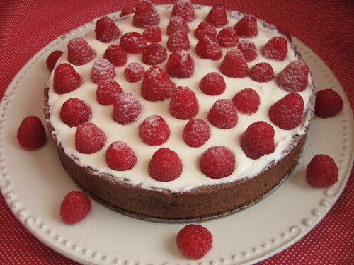 Distribua as framboesas por cima do chantilly e coloque no frio até ao momento de servir.